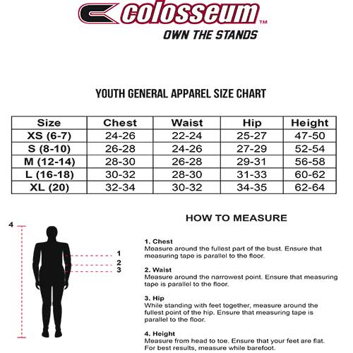 100% Polyester, Colosseum youth performance long sleeve tee.